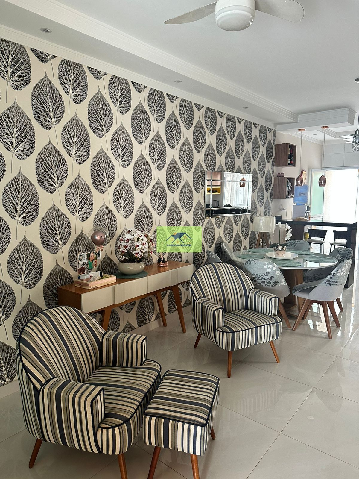 A sala e cozinha integradas com planejados proporcionam praticidade e elegância.